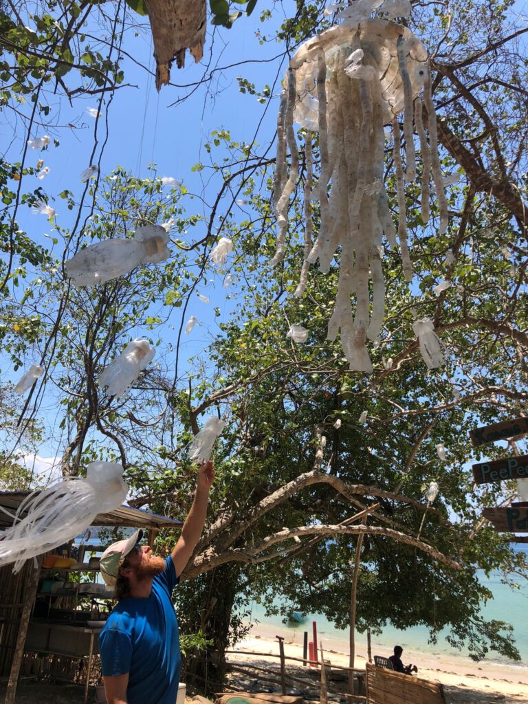 The Jungle is built out of hundreds of small single bottle jellies suspended around the mother of all plastic jellyfish. One Ocean Empire uses this in their educational work in local schools and across the world as an example of the waste problem and solutions we are all faced with, particularly on isolated island communities.