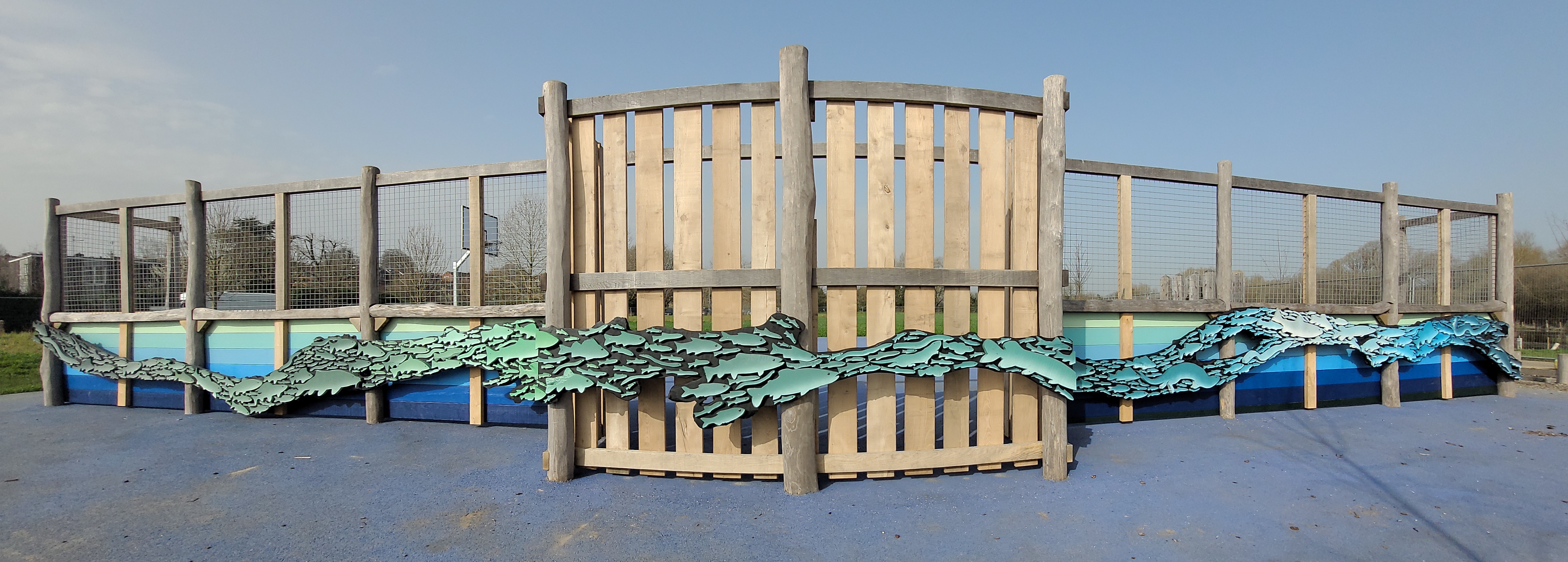Every now and again I create large scale artwork for the outdoors. This may take many different forms (wall-mounted, ground-anchored, free-standing, sculptural, mural, interactive…etc) but is most often made of timber and has some sort of eco-flavour. This could mean the use of recycled materials, the creation of unique habitats for wildlife or developing positive educational narratives of ecology and the environment around an installation. I often carry out my design work in tandem with a rigorous process of community engagement to help anchor the artwork to an area and foster a sense of community pride and ownership over the work.